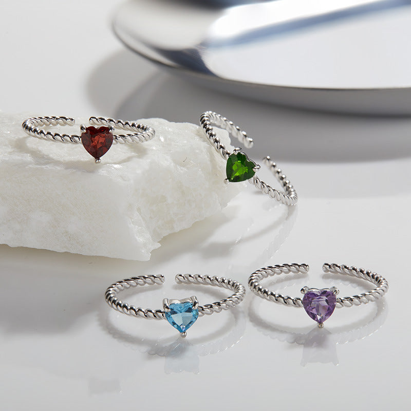 925 Silver Love Rope Ring - Amethyst/Garnet/Blue Topaz/Diopside